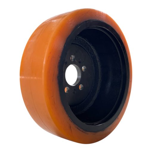 Bánh lái PU 250×80 mm được thiết kế để lắp trực tiếp vào cụm dẫn động của motor lái trên xe nâng tay điện tầm cao (pallet stacker) và pallet truck, đảm bảo khả năng điều hướng chính xác và truyền lực ổn định. Vật liệu PU (Polyurethane) chất lượng công nghiệp, độ cứng Shore A 92–95, mang lại khả năng chống mài mòn vượt trội, chịu tải trọng lớn và giảm biến dạng khi vận hành liên tục. Lớp PU bọc trên lõi thép cường lực phân bổ đều áp lực, giúp giảm rung lắc và tiếng ồn, đồng thời bảo vệ bề mặt sàn kho (bê tông, epoxy, hoặc gạch công nghiệp).